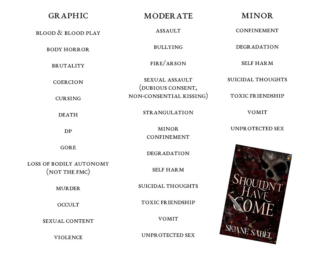 Shouldn’t Have Come merges Her Soul to Take with The Four Horsemen series by Laura Thalassa into a horror romance set in a haunted motel. The harbingers are hot, deadly, and queer, the heroine won’t choose, and everybody wins at the end… well, mostly. This is a paranormal dark monster romance dripping with depravity and spice. It is very smutty and strictly for adults—please check the Reader’s Advisory before reading.